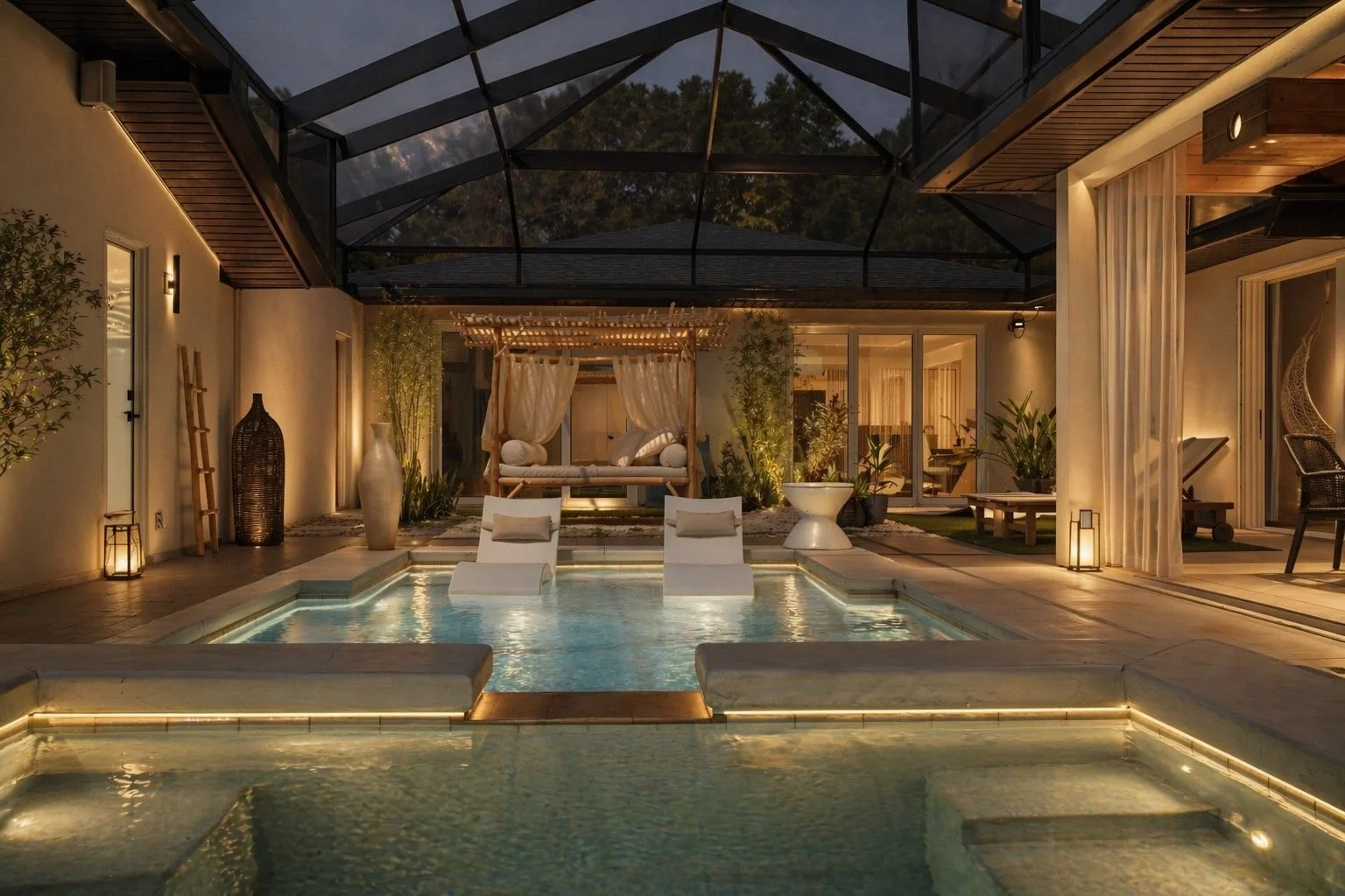 A private, wellness-driven environment designed to support both focus and recovery. Featuring pro pickleball courts, beach volleyball, basketball, a swimming pool and cold plunge, ATV trails, jet skiing, and a full Pilates, yoga, and gym offering, the space is built to keep creators sharp, balanced, and operating at their highest level.