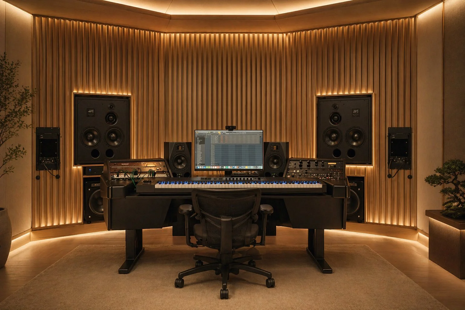 A state-of-the-art production and mixing environment built to the highest standard. Outfitted with world-class equipment, including Telefunken microphones and top-tier analog and digital gear, the studios are designed for precision, speed, and creativity at the highest level.